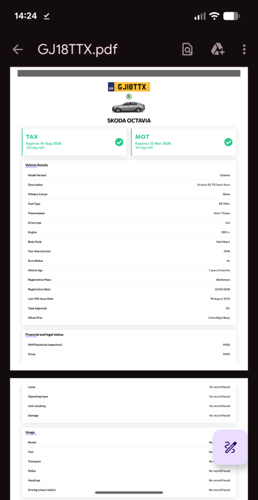 Buy the full report for guaranteed data accuracy, outstanding finance, valuation, milage check & VIN match for £9.99 (normally £19.99)