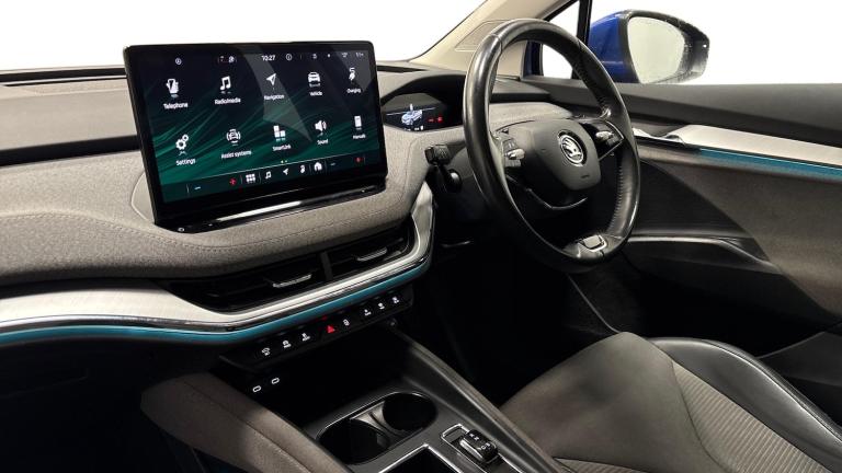 THIS 2021 SKODA ENYAQ 80 LOFT REPRESENTS AN OPPORTUNITY TO ACQUIRE A NEARLY-NEW VEHICLE. THE ENYAQ, AN ALL-ELECTRIC SUV, COMES IN THE 80 LOFT TRIM. STAY CONNECTED ON THE MOVE WITH BLUETOOTH AND WIRELESS SMARTLINK, WHICH INCLUDES ANDROID AUTO. THE SKODA CONNECT - IV REMOTE SERVICES, INCLUDING AIR CONDITIONING, ENSURES A COMFORTABLE CABIN ENVIRONMENT, ENHANCED BY THE DUAL-ZONE CLIMATE CONTROL. MANOEUVRING IS MADE EASIER WITH REAR PARKING SENSORS. THE ENYAQ'S STRENGTHS LIE IN ITS PRACTICALITY AND EFFICIENCY. THE LARGE BOOT SPACE MAKES IT MORE VERSATILE THAN OTHER VEHICLES IN ITS CLASS. THE 82 KWH BATTERY PROVIDES A MAXIMUM RANGE OF 330 MILES WHEN NEW. CHARGING AT HOME FROM EMPTY USING A 7KW CHARGER TAKES APPROXIMATELY 11 HOURS, WHILE RAPID PUBLIC CHARGING CAN BOOST THE BATTERY FROM EMPTY TO 80% IN JUST 28 MINUTES.