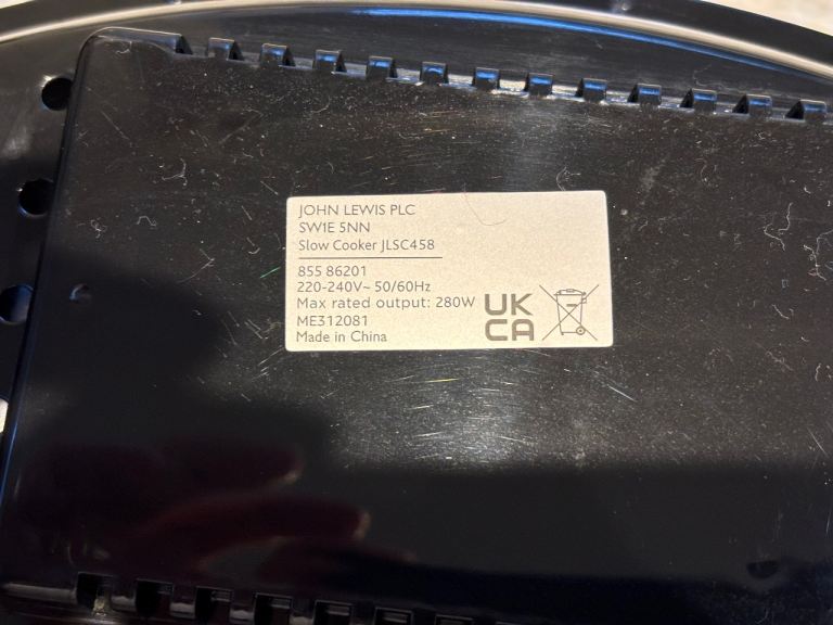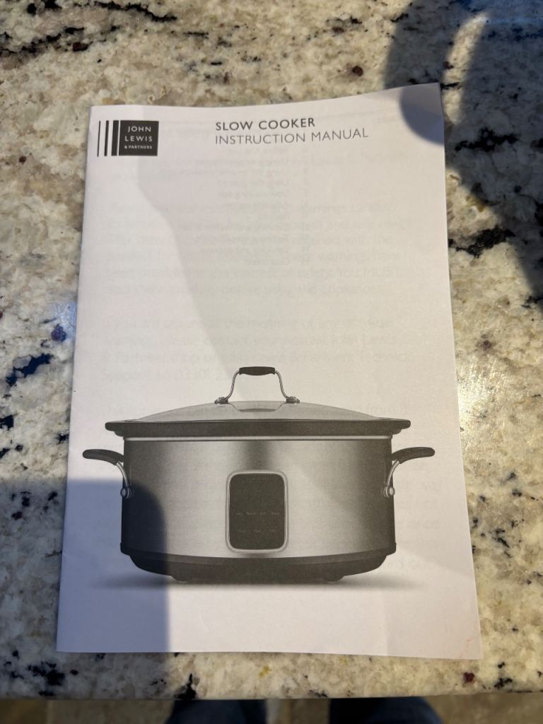 John Lewis slow cooker model JLSC458 has a 6 litre capacity. We have only used it a couple of times and it is in very good condition, as new. Instruction manual to go with it. Collection only. Cash on collection.