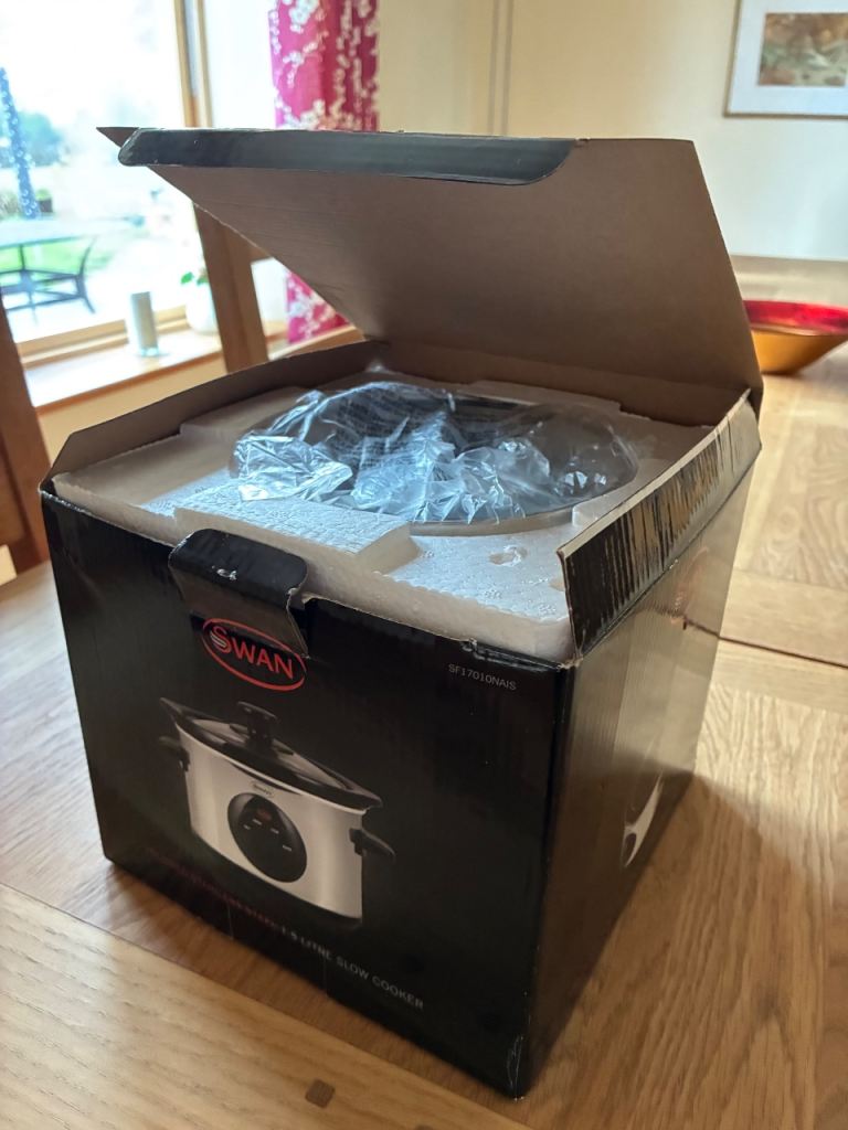 Swan 1.5 litre (small) polishes stainless steel slow cooker.
