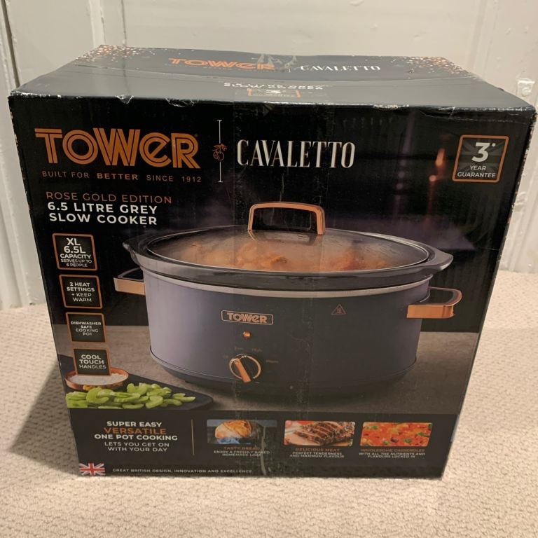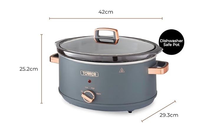 Tower T16043GRY Cavaletto 6.5L Slow Cooker - 3 Heat Settings Grey and Rose Gold