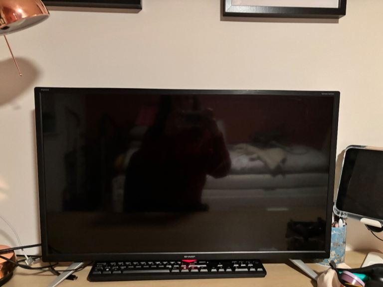 In working order will no longer connect to the WiFi not sure as to why but I used it through my sky box as I didn’t need the smart features otherwise in good working condition no cracks comes with the remote
