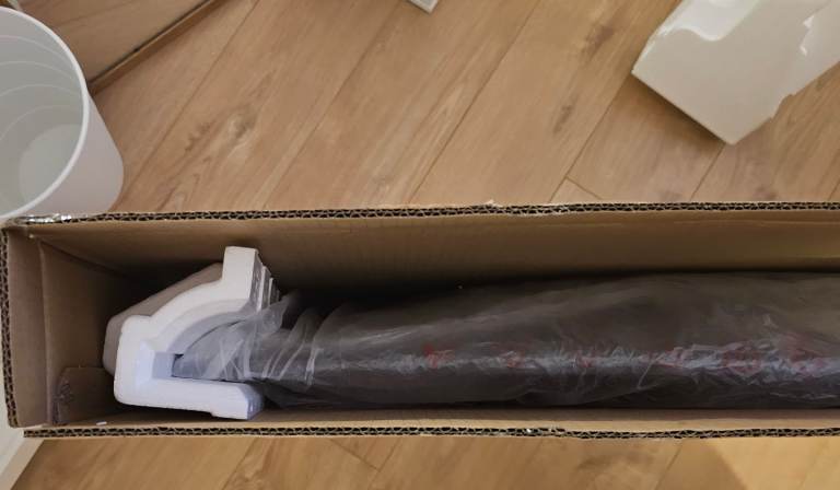Comes with Box, original packaging, stand legs (metal), remote and power plug.