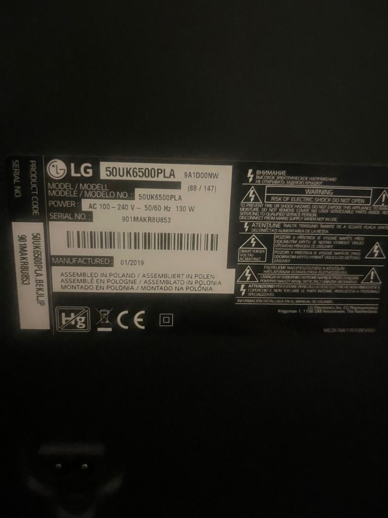 50inch smart LG TV works perfectly fine only selling due to getting a bigger TV