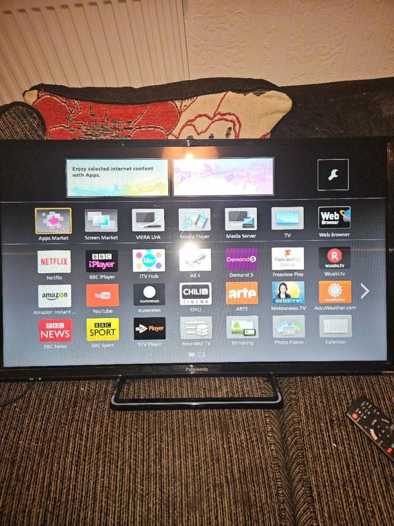 Great and perfect tv working with excellent pictures come with remote youtube netflix and lots of apps welcome to see working or collection can be arrange.