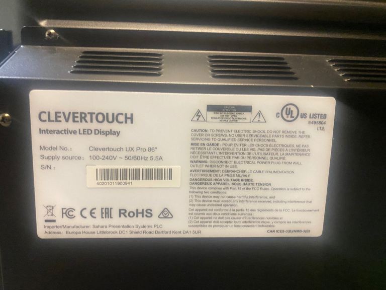 Clevertouch UX Pro 86 perfect working condition
