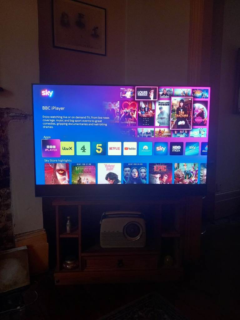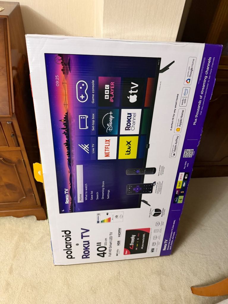 Hardly used it. I have owned it for some years. It is a smart tv with wifi and other features. It works perfectly. Comes with original remote and cables.