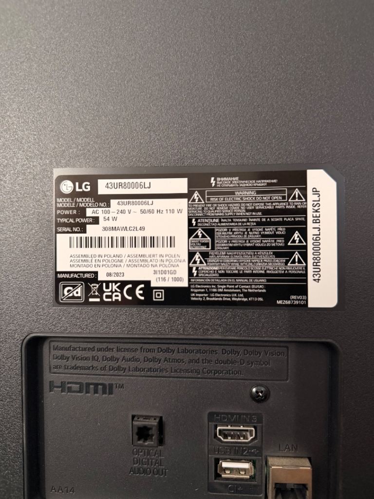 Posting for 3+ yearsLG 43” Smart TV UR80006LJ 4K UHD webOS23 – Excellent Condition
