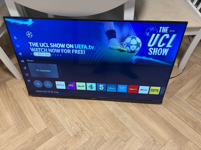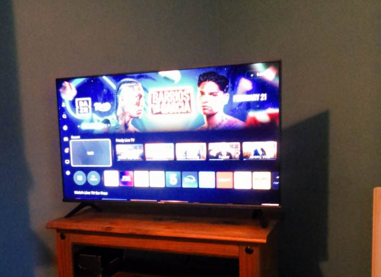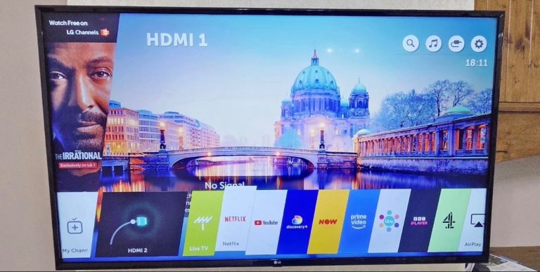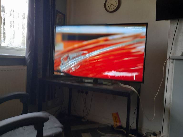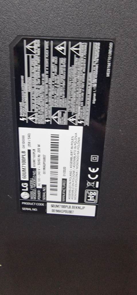 Lg 60" 4K smart TV in good working order, but has a very faint horizontal line on the screen, barely visible upon close inspection.