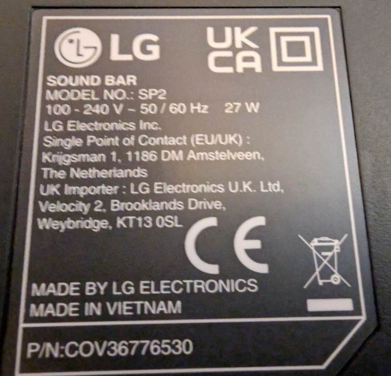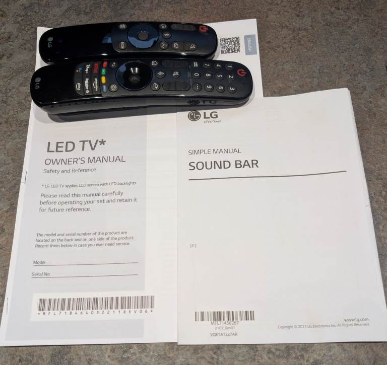 Also with LG SPR2 100W soundbar, with 2.1 channel sound, built in subwoofer cinemas and gaming modes.