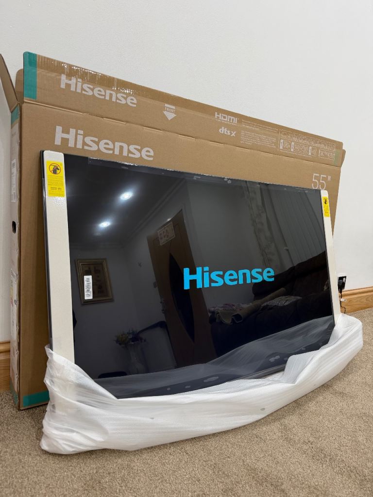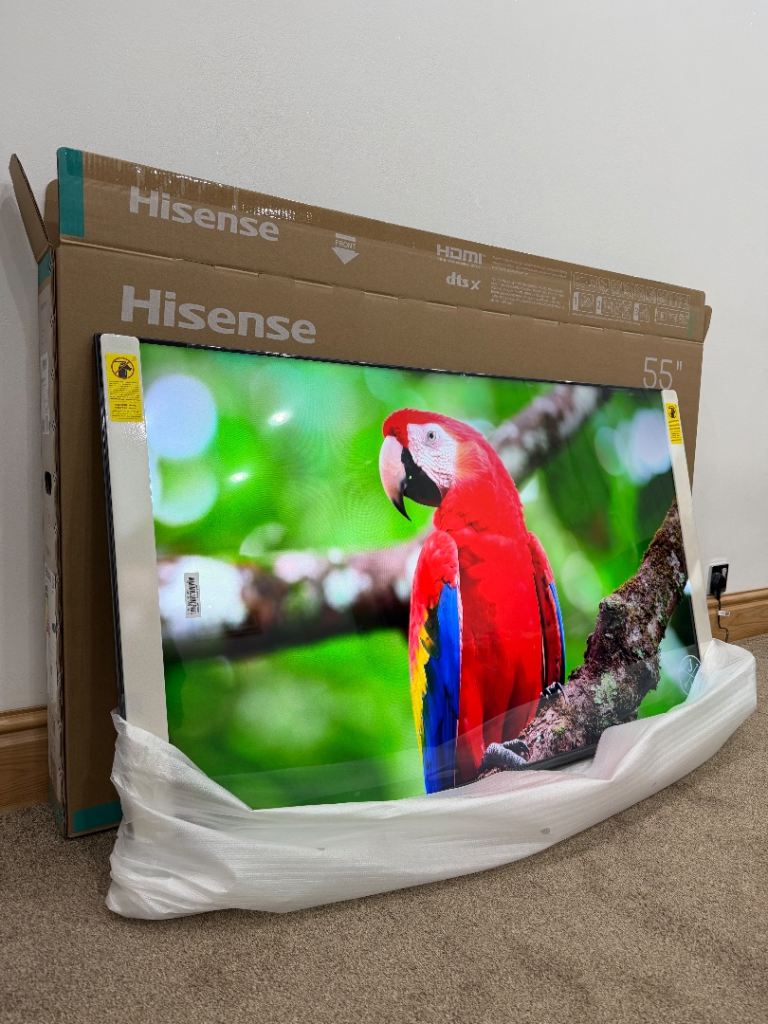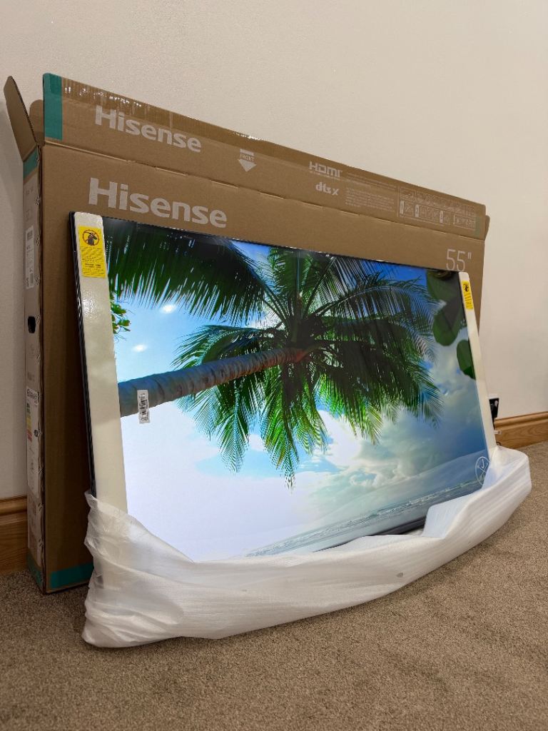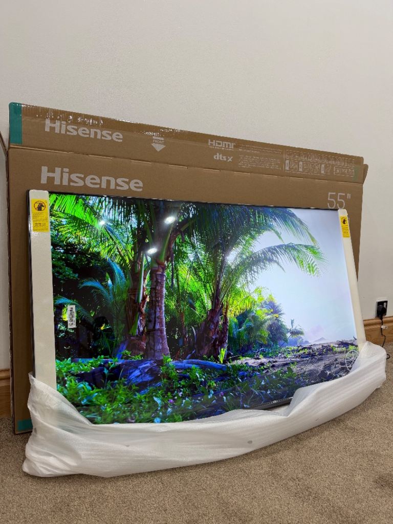 Hisense 55” TV – great picture, great sound, and works perfectly. Ideal upgrade for any living room!