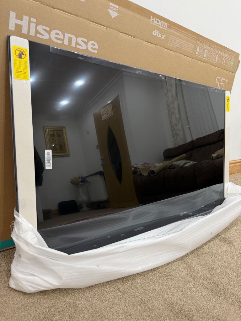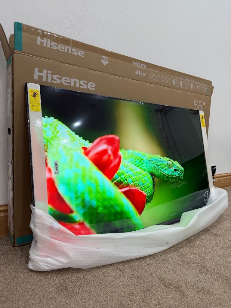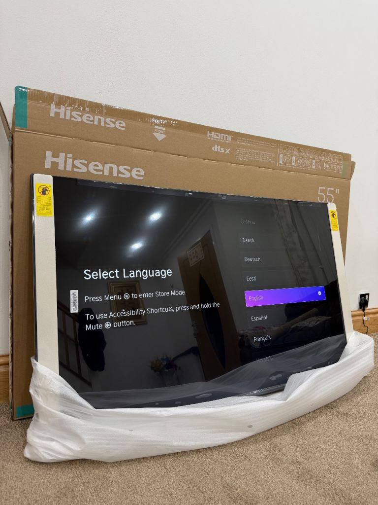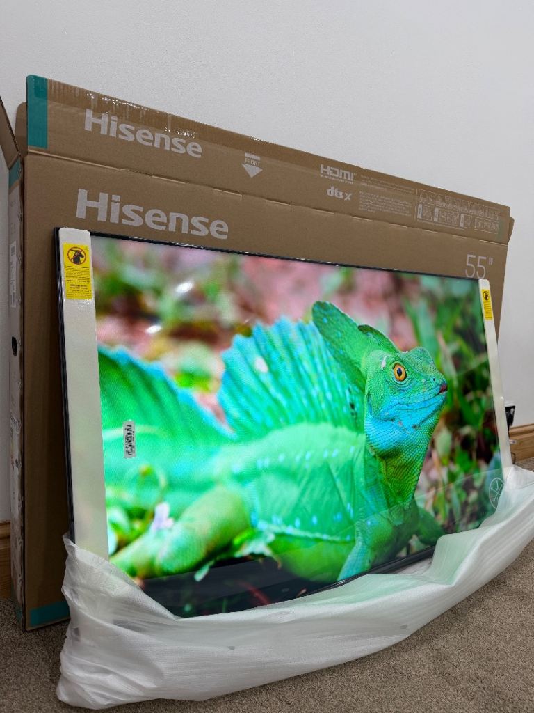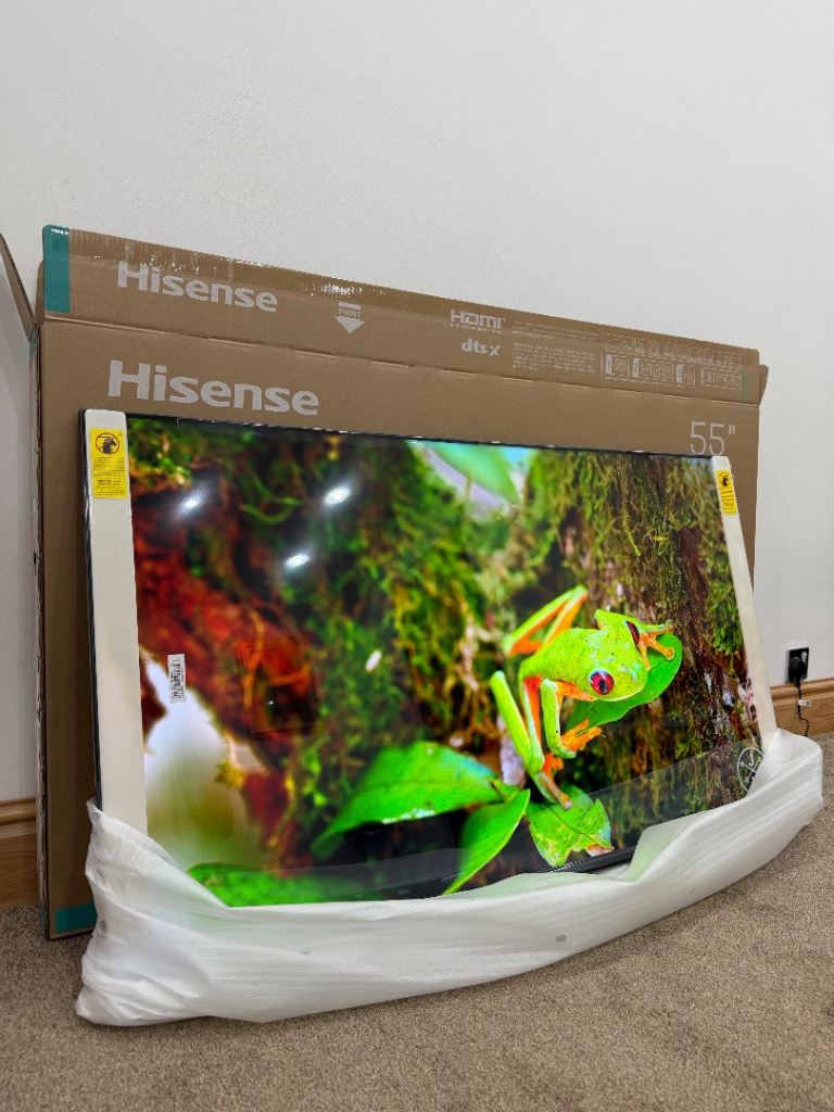 Hisense 55” TV – great picture, great sound, and works perfectly. Ideal upgrade for any living room!
