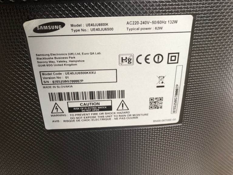 Samsung model UE40JU6500 : It is a 'fully loaded' SMART/WiFi UHD TV & can access all the main Apps, inc; Netflix, YouTube, Prime, BBC iPlayer, etc. Also has HDMI's for connection to Sky/BT/Firestick/XBox, etc.