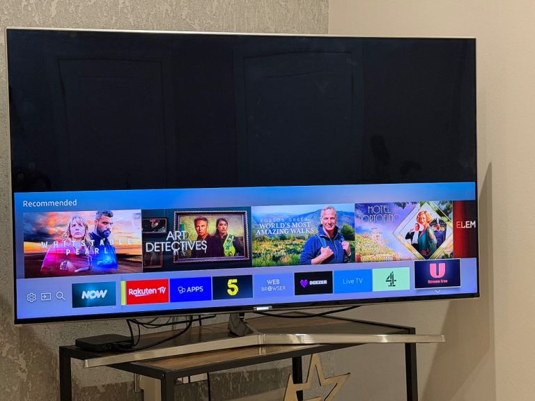 Samsung 49" LED Backlit LCD 4k tv with smart remote control and regular remote control. Also has original chrome stand, but can also be wall-mounted if required.. In excellent condition and everything works perfectly. can be added to a Samsung account which can be set up and accessed on the tv. Samsung account can also be set up on mobile phone along with (free) Smart Things app, which can act as a remote control on your mobile. The tv has voice control via the smart control handset. Can connect to external devices via Bluetooth.