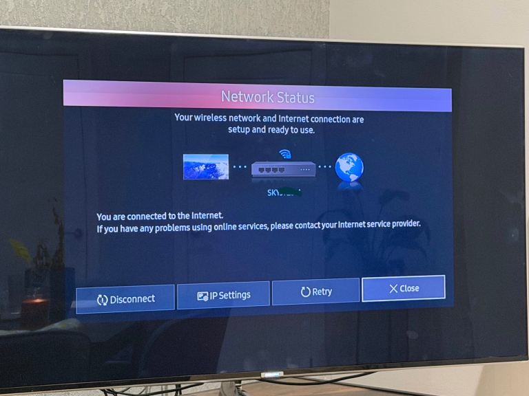 Has Netflix, BBC iPlayer, YouTube, ITV X , Samsung Smart Hub apps along with many others. Photos on mobiles can be viewed on the tv through the Samsung smart View app.