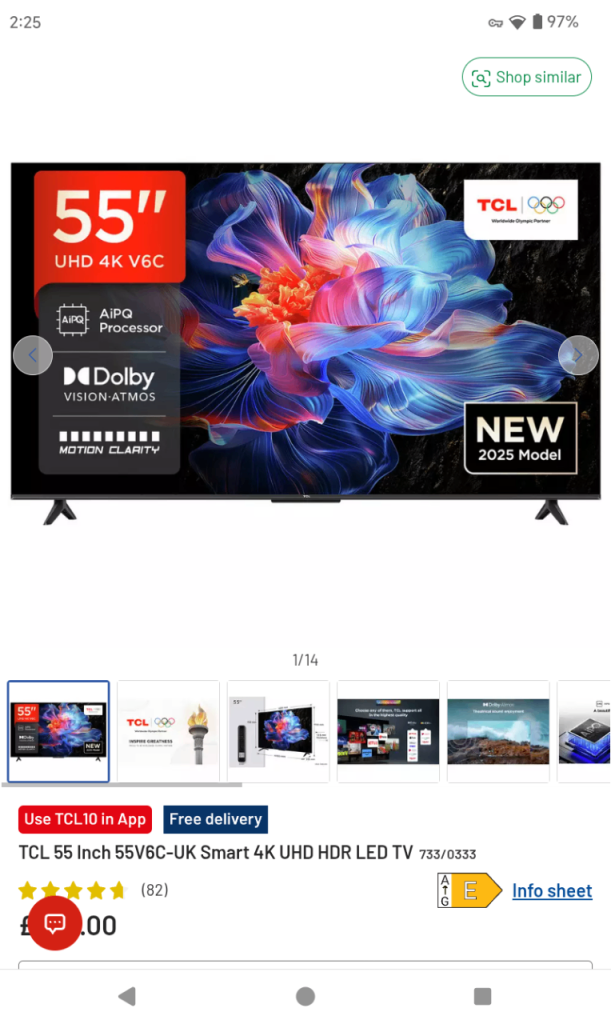 i have a sky glass tv.fully working!few months old.getting a new tv and 2 big for bedroom.650 but willing to listen to offers.