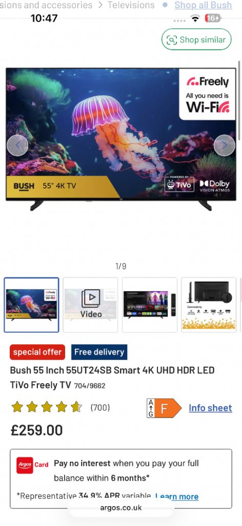 smashed 55 inch smart tv, bought 7 weeks ago, a toy has hit the screen (see photos) spares or repairs