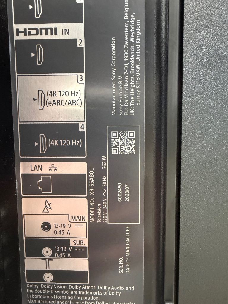 Sony BRAVIA XR55A80LU 55 inch OLED 4K Ultra HD HDR Android Google Smart TV