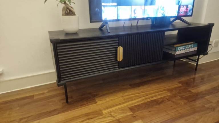 2. Haines Wide Media Unit – Charcoal Black Mango Wood