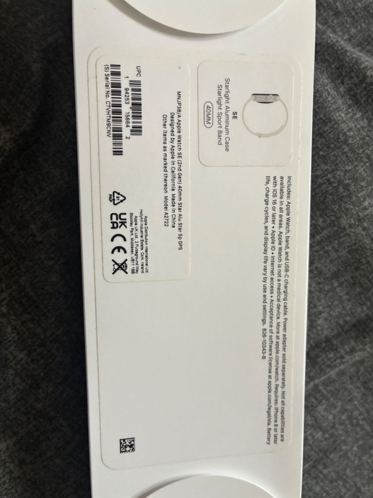 Apple Watch SE 2nd generation 40mm in starlight with box and USBC charging cable excellent condition smoke free home. Can deliver if local. Please do not ask to POST collection or delivery if local and either bank transfer at the door or cash.