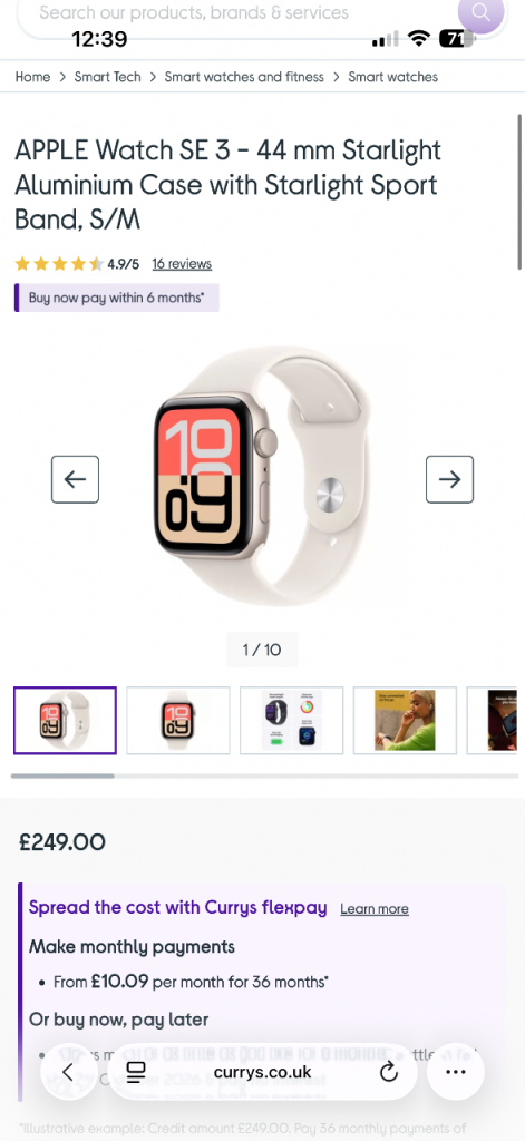 Selling my Apple Watch SE3 44mm in starlight.