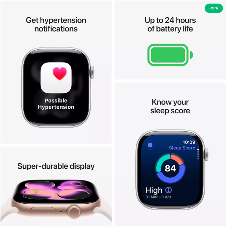 BUILT TO LAST — With a super-durable glass display that’s 2x more scratch resistant than Series 10. Series 11 also has a water resistance rating of 50m and is IP6X dust resistant.