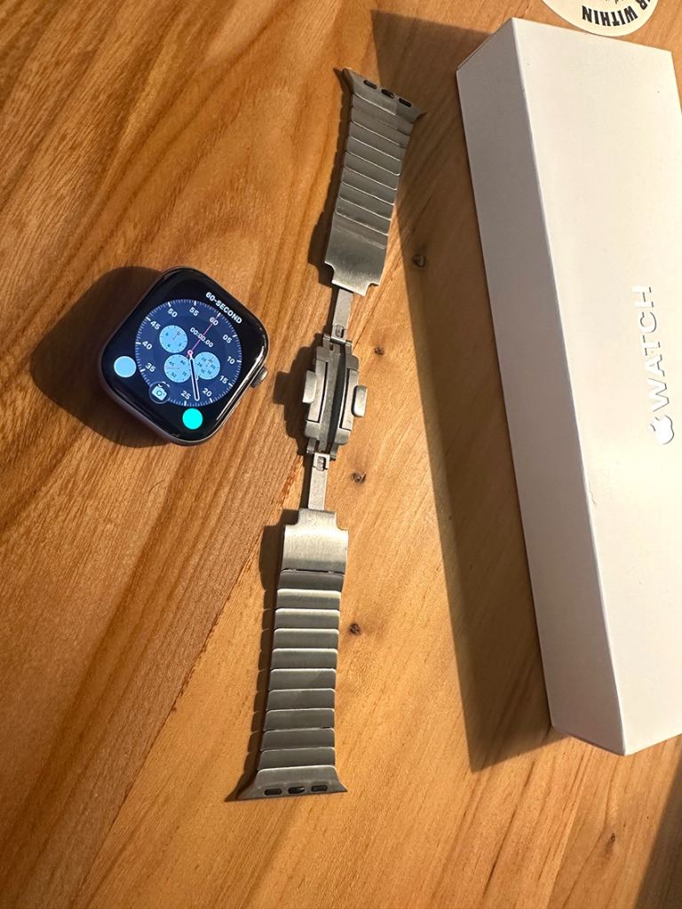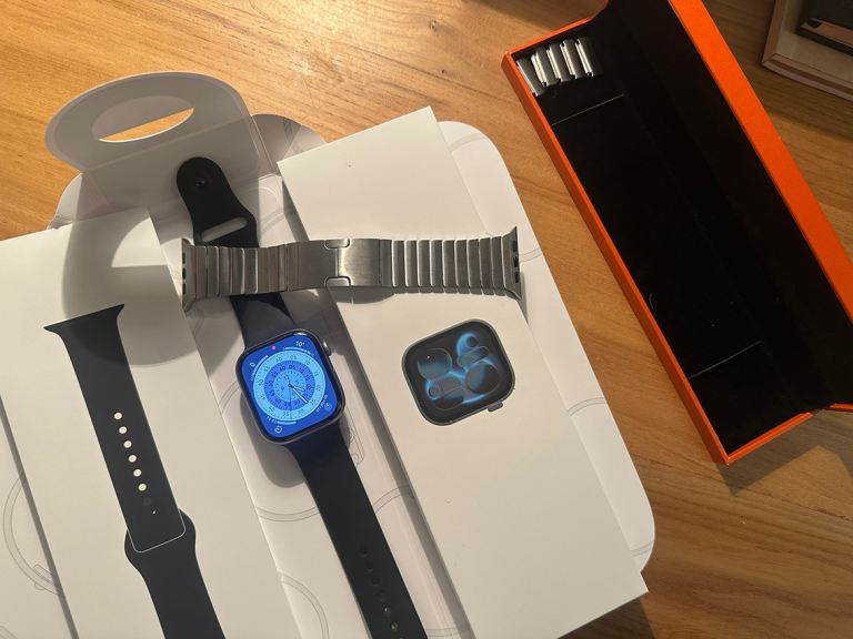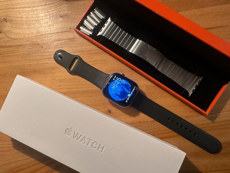 Only a few months old in as new condition. Comes with black sports strap M/L and sought after stainless steel link strap from The Watch Strap Company London worth £149, total package cost £548. Excellent all round watch for health tracking and statement piece when paired with the link strap...