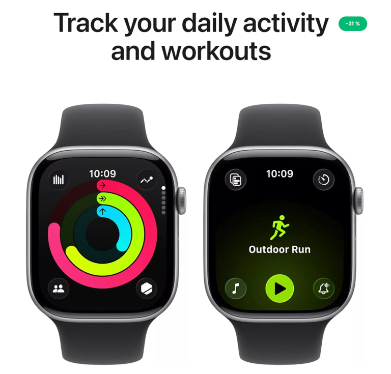 A POWERFUL FITNESS PARTNER — With advanced metrics for all your workouts, plus features like Pacer, Heart Rate Zones, training load, Workout Buddy powered by Apple Intelligence from your nearby iPhone, and more. Apple Watch Series 11 also comes with three months of Apple Fitness+ free.
