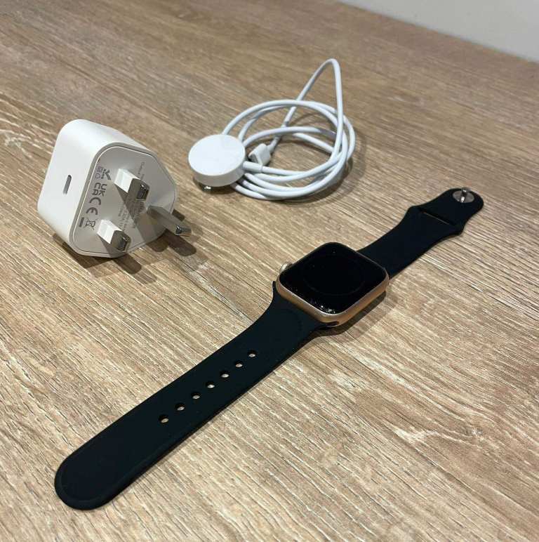 Apple Watch Space Grey and Rose Gold With New Black/White Strap & Cable & Plug