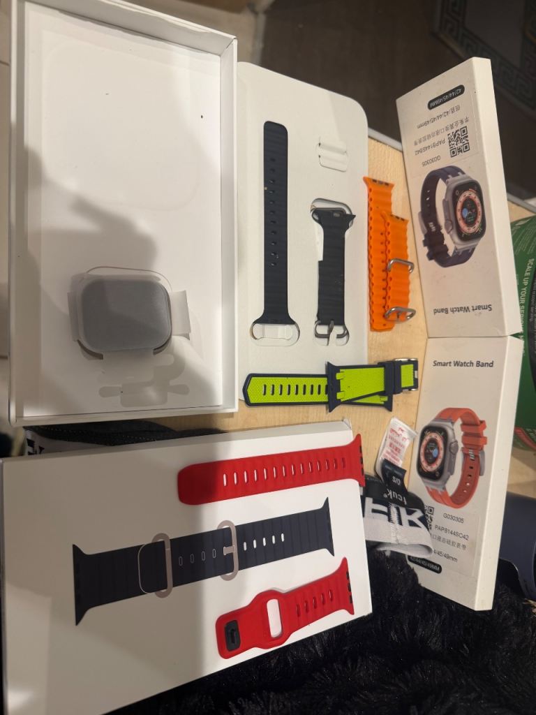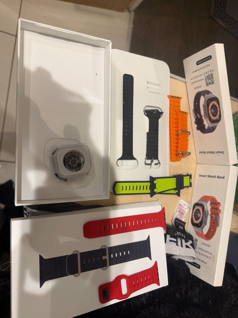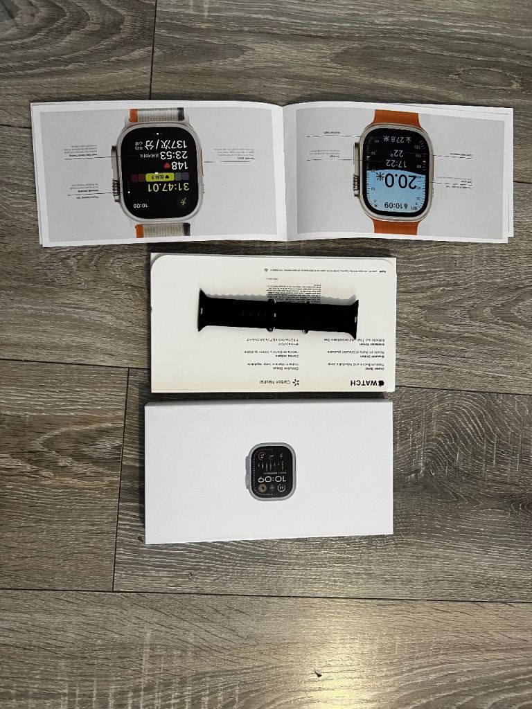 I-watch ultra first generation GPS immaculate too big for my wrist have normal iwatch. Comes with a selection of straps various colours and charger. No scratches or dents original packaging never really worn because of size.