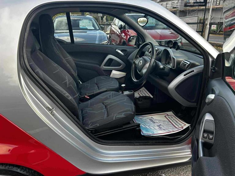 ++NON ULEZ COMPLIANT++ **2009 REG OF SP09 YWL++ SMALL AUTOMATIC, 1 Key, HPI clear, Finished in Silver/Red with Black/Grey cloth seats, Comes with 72,050 miles, Supported by very good service history, Electric windows/mirrors, CD player, Air con, Air bags, ABS, Alarm, Central locking, PAS, All round this is a cracking little 1st car for someone. Cheap tax at £20 per year, great MPG return, Low insurance group 4P. This will come with a new MOT+SERVICE with us here at CTC upon purchase at screen price. Do not miss out on this cracking little SMART FORTWO 0.8 CDI TURBO PASSION COUPE SPEC, 3 DOOR, 5 SPEED AUTOMATIC CAR. This is now ready to drive away today. IF YOU WOULD LIKE ANYMORE INFO ON THIS CAR THEN PLEASE CALL US ON 01633 741708. ALSO CLAIM YOUR FREE 12 MONTHS AA BREAKDOWN COVER.. 15in 12Spoke Alloy Wheels,2 Speakers,2Spoke Leather Steering Wheel,Chrome line Exterior Trim,Paint- Solid- Solid roof,Panoramic Glass roof with sunblind,Smart Radio nine Radio & CD player,TRIDION safety cell door mirror caps & Front grille- Black,TRIDION safety cell door mirror caps & Front grille- Silver