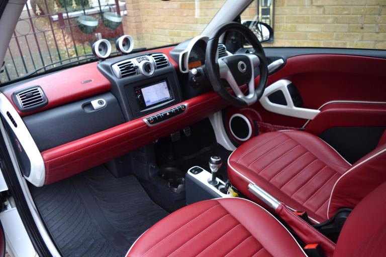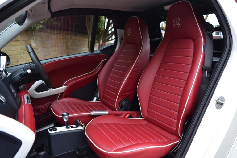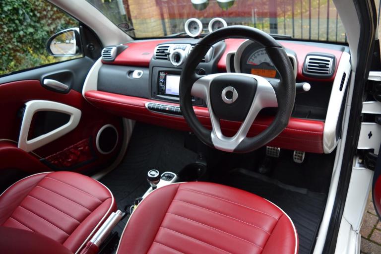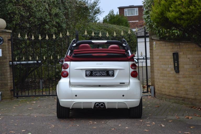 DCC are proud to offer this extremely rare Smart fortwo BRABUS Tailor Made Edition 'White Star' Cabriolet, finished in stunning Bianco Gioioso Perla paint with red flamencorot BRABUS tailor made leather upholstery, grenadine red tritop roof & staggered 16/17 inch gloss black BRABUS monoblock alloy wheels. Equipment includes: Rosette speakers, heated seats, air conditioning, electric power steering, cup holder and Pioneer satellite navigation. A beautiful example offered for sale by DCC: rare factory BRABUS tailor made cabriolet, service history, last serviced at Mercedes-Benz on 20/12/2025 at 34,600 miles, MOT until 16/10/2026 and matching Yokohama S Drive tyres fitted all round. Comes with both keys, the original purchase invoice from Smart of Portsmouth for 23,675 and certificate of authenticity from BRABUS HQ in Bottrop, Germany. This is a perfect example of an appreciating asset. A future classic, becoming harder to obtain with low mileage, especially in a good colour and convertible. We are a Smart specialist, for full up to date Smart stock, please visit our website dcc.co.uk. Message us via WhatsApp using +44(0)20 8989 0001. Part exchange is welcome. Competitive finance packages available both HP & PCP. Our numerous 5-star customer reviews are available to view on AutoTrader & Google. DCC is a professional, friendly family run business, with an excellent reputation, that we have built up during our 40 years in the industry. During your time spent with us at DCC you can always expect a relaxed, non-pressurized atmosphere where you can view vehicles at your leisure whilst enjoying our huge collection of motoring memorabilia in our quirky underground boutique showroom. We operate a 'viewing by appointment only' policy, please email or phone to arrange a suitable time & date. Our showroom is within easy reach of greater London and Essex; we are located just 15 minutes from the M25, and 5 minutes from the M11 motorways. We are also ideally located 1-minute walk from South Woodford tube station, on the central line