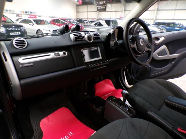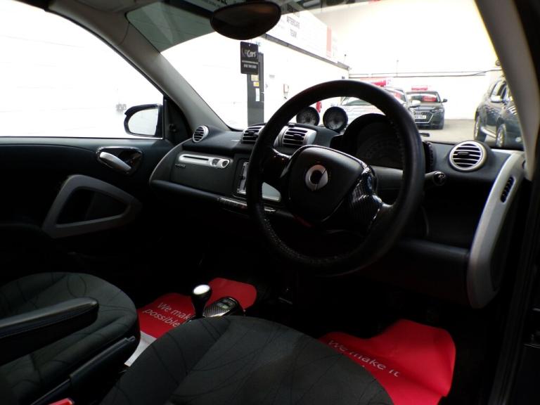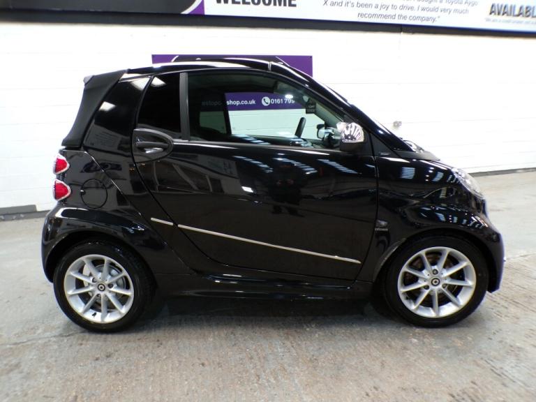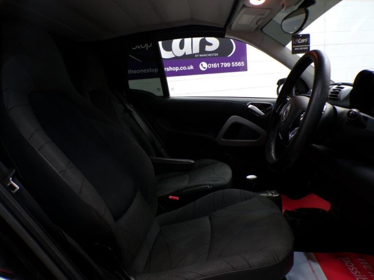 50975 miles. This 2013 Smart Fortwo MHD Passion is a great find with exceptionally low mileage for its age, having covered just 50,975 miles. This particular model boasts the Passion trim and is equipped with a 1.0 litre petrol engine. It comes with a 12 month MOT for your peace of mind and has two keys and a seven stamp service history. Inside, you'll appreciate the convenience of the Bluetooth Hands Free System, perfect for staying connected on the go, and the Air Conditioning with Automatic Temperature Control to keep you comfortable in all conditions. The opening panoramic roof adds a sense of spaciousness and allows you to enjoy the sky above. This Smart Fortwo stands out with its impressive fuel economy, achieving a remarkable 64 miles per gallon, which is significantly better than many other vehicles in its class. Furthermore, its low CO2 emissions make it an environmentally conscious choice. Despite its compact size, you'll be pleased to discover a surprisingly large boot space, offering practicality for your shopping or weekend getaways. It will come with a three month Warranty which includes full roadside assist breakdown cover, provided by a trading standard approved company. For full details of this vehicle and to request a walk around video please give one of our dedicated sales team a call on 0161 799 5565 PLEASE NOTE THAT CURRENTLY NOT ALL CARS ON SITE HAVE BEEN FULLY PREPARED TO SHOWROOM STANDARD. Therefore, appointments are preferred to give us a chance to check the car over prior to your visit. This is not compulsory and should you wish to visit the site without an appointment please just bear in mind the vehicles may still require all or some of their prep work. Thank you in anticipation of your patience. ALL CARS COME WITH AT LEAST A TEN MONTH INDEPENDANT MOT WITH ALL ADVISORIES COMPLETED PRIOR TO COLLECTION. ALL CARS HAVE AN OIL AND FILTER SERVICE (IF ONE IS DUE) PRIOR TO COLLECTION ALL OUR CARS ARE HPI CLEAR PART EXCHANGE WELCOME, VERY COMPETIVE VALUES OFFERED FINANCE OPTIONS ARE AVAILABLE ,GREAT RATES OFFERED AND WE ARE FULLY FCA REGULATED. 12v Socket, Bluetooth Preparation (Phone), Climate Control, Front and Rear Electric Windows, Pollen Filter, Remote Boot Release, USB and AUX, Leather Steering Wheel, Satellite Navigation, Anti Lock Brakes, Driver Airbag, Electronic Brakeforce Distribution (EBD), Electronic Stability Programme (ESP), Passenger Airbag, Remote Central Locking, Cloth Upholstery, Solid Paint, Alloy
