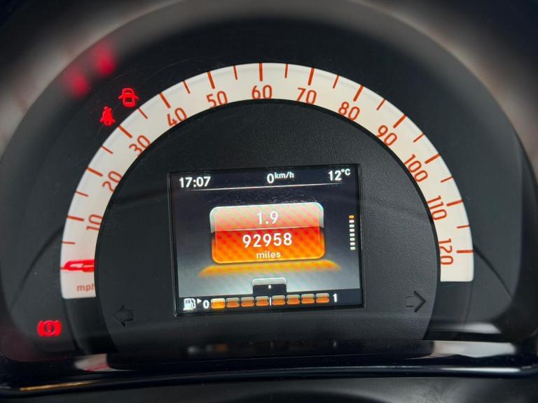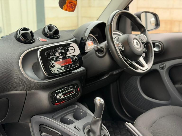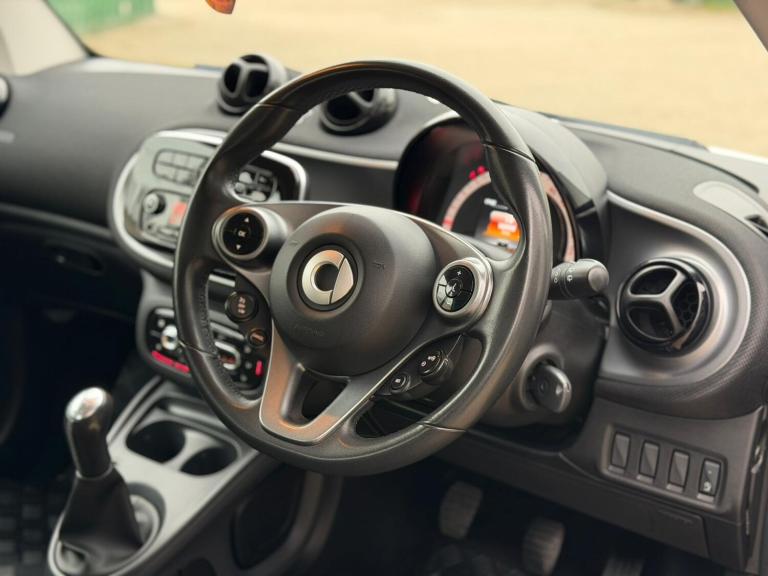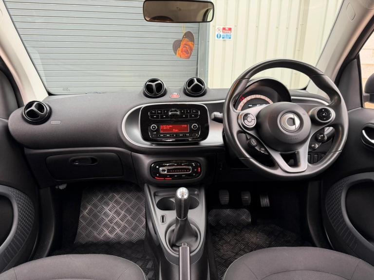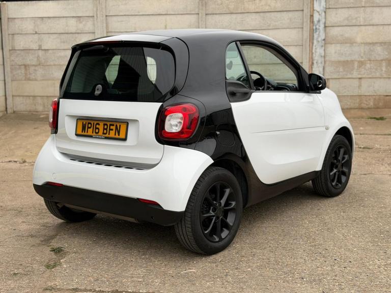 Smart Fortwo Coupe 1.0 Passion 2016 finished in white with black tridion safety cell and contrasting interior, covered 92950 miles. This is a great example of the facelift shape smart powered by the reliable and economical 1.0 litre petrol engine producing 71 bhp paired with a 5 speed manual gearbox, offering excellent fuel economy and very low running costs making it ideal for city driving or a first car. Good specification Passion model including alloy wheels, cruise control with speed limiter, automatic air conditioning, smart audio system, multifunction steering wheel, trip computer with colour display, electric windows, remote central locking, electric mirrors, LED daytime running lights, privacy glass, rear spoiler, tyre pressure monitoring system, ISOFIX child seat points and more. Vehicle details: 2016, 1.0 petrol, manual, rear wheel drive, 2 door coupe, registration WP16BFN, VIN WME4533422K060721. A practical and economical small car in good condition with sensible mileage and cheap to run and insure.