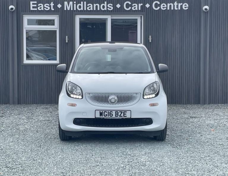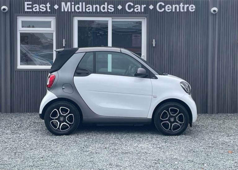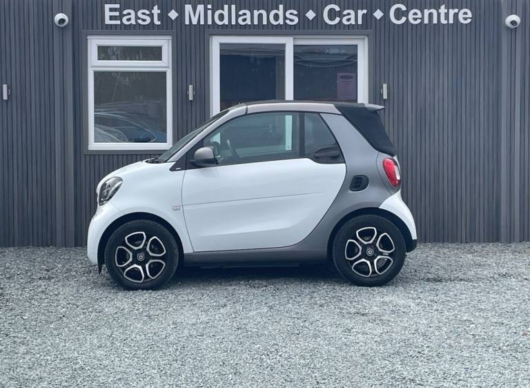 WELL PRESENTED SMART FORTWO 1.0 AUTOMATIC CONVERTIBLE IN WHITE, WARRANTED LOW MILES HAVING ONLY COVERED 27,300 MILES FROM NEW, EXCELLENT MAINTENANCE RECORD WITH FULL SERVICE HISTORY, RECENT 12 MONTHS MOT, LAST SERVICED AT CURRENT MILEAGE, 2 KEYS, EXCELLENT SPECIFICATION INCLUDING FULL LEATHER INTERIOR, HEATED SEATS, SMART NAVIGATION & MEDIA SYSTEM WITH BLUETOOTH CONNECTIVITY, DAB RADIO, VOICE CONTROL, EXTERNAL MEDIA CONNECTIONS, REAR PARKING SENSORS, CRUISE CONTROL, DRAFT STOP, ELECTRIC WINDOWS, AIR CON, REAR SPOILER, ELECTRIC WINDOWS, 15in ALLOY WHEELS East Midlands Car Centre is A family business you can trust. We have built our reputation based on the quality of cars we supply and the outstanding customer service we deliver. Here at East Midlands Car Centre We are extremely passionate about what we do, we endeavour to ensure all our customers have a warm family friendly experience whilst choosing the right vehicle and receiving great value for money. HPI clear. Part exchange welcome. Open late by appointment. Extended warranties available up to three years. Finance Available NO deposit required. All vehicles inspected and serviced by Lutterworth Ford. Any further information or viewing please contact us on 01455 203659 or [Phone number removed] Nationwide home delivery service available. All specification data above provided by third party source, we accept no liability for errors in this advert, please call the sales team to confirm any of the details above. .