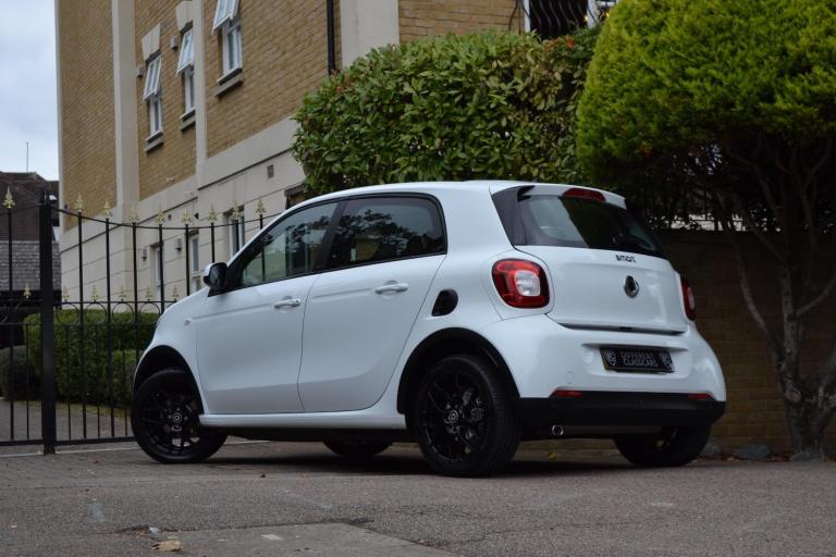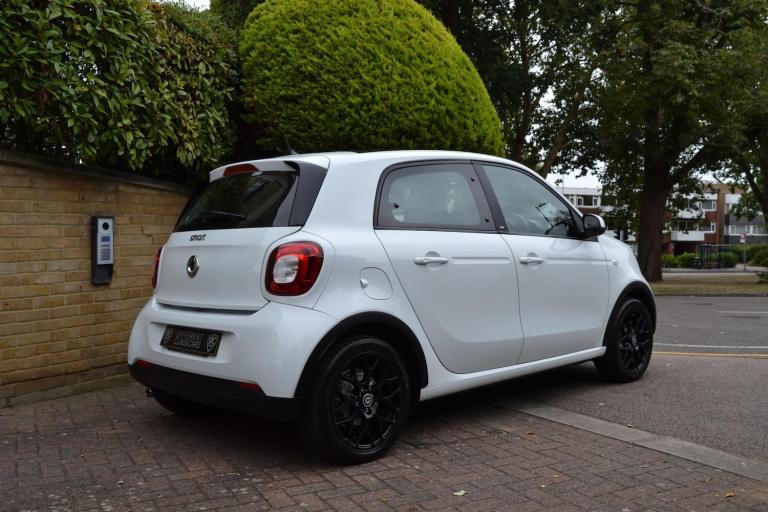 WE HAVE LOTS OF SMART CARS IN STOCK PLEASE LOOK ON [Website URL removed] are pleased to offer this Smart ForFour Prime Sport Premium, finished in white with full black leather upholstery, white tridion safety cell, white grill & 16 inch gloss black sport Y spoke alloy wheels. Factory equipment includes: upgrade sound system with tweeters, satellite navigation, glass panoramic sunroof, rear parking sensors, electric mirrors, climate control, bluetooth, cruise control, heated rear window, heated seats, height adjustable drivers seat and 3 spoke multifunction leather steering wheel with paddle shift gear change. A perfect example offered for sale by DCC: full service history, last serviced at 14,243 miles. The MOT expires on 14/09/2026 and it comes with two keys. Fitted with the sort after 0.9T 90bhp engine, low ownership and low mileage, examples like this are becoming harder and harder to find. We are a Smart specialist, for full up to date Smart stock, please visit our website dcc.co.uk. You can message us via WhatsApp using +44(0)[Phone number removed] - [Website URL removed]. Part exchange is welcome. Competitive finance packages available both HP & PCP, please ask for a quote or more information. Our numerous 5-star customer reviews are available to view on AutoTrader & Google. DCC is a professional, friendly family run business, with an excellent reputation, that we have built up during our 40 years in the industry. During your time spent with us at DCC you can always expect a relaxed, non-pressurized atmosphere where you can view vehicles at your leisure whilst enjoying our huge collection of motoring memorabilia in our quirky underground boutique showroom. We operate a 'viewing by appointment only' policy, please email or phone to arrange a suitable time & date. Our showroom is within easy reach of greater London and Essex; we are located just 15 minutes from the M25, and 5 minutes from the M11 motorways. We are also ideally located 1-minute walk from South Woodford tube station, on the central line