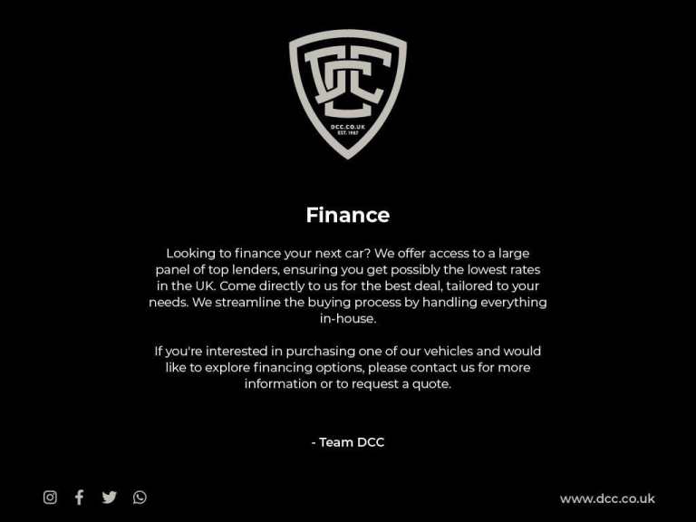 We are able to help you purchase your vehicle offering competitive finance packages. To apply for finance with us, please click here or contact us on the details below. Finance subject to status. Written details available on request.
