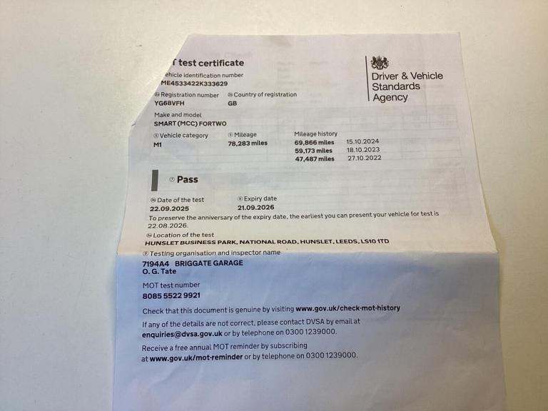 The car has been to Smarts r us for a service and diagnostic check. The car has recently had a new manifold and Cat , new belt adjuster and belts. Lovely clean car inside and out. Book pack and two keys. Six months Momentum warranty with free breakdown recovery. Please read my Autotrader reviews and buy with confidence. More available Smarts on my website. Features Include: , 12 volt socket with cover, 15in alloy wheels - 8-spoke painted in silver, abs - anti lock braking system, airbag - kneebag for driver, airbags - driver and passenger, airbags - sidebags for driver and front passenger - combined head and thorax, automatic climate control, black front grille, brake assist, breakdown kit with air compressor and sealant, central locking with convenience closing features, central locking with radio remote control - visual locking-verification signal, centre console with pull-out tray and double cup holder, crash sensor for activation of hazard warning lights, crosswind assist, cruise control with speedtronic variable speed limiter, dashboard and door centre panel - black fabric, direct-steer system with speed sensitve power assistance and variable steering ratio, door mirror caps in tridion colour, door mirror with aspherically curved mirror glass on driver side, drive lock - automatic door locking when the vehicle is in motion, esp - electronic stability programme, electric windows, exterior temperature indicator with frost warning, folding key, gearshift lever - trimmed in leather, headlights - h4 halogen, hill start assist, isofix child seat attachment point on passenger seat, inside door opener - matt chrome, instrument cluster with multi functional colour 3.5in display, interior lighting, led daytime running lights, load-lashing eyes in luggage compartment, lockable glove compartment, lockable service bonnet, luggage compartment cover, luggage compartment lighting, map pocket - driver and passager seatbacks, onboard computer, passenger seat with through - loading function - flat-folding seatback, pedestrian impact protection front and side, radiator trim - black, rear spoiler, rear windscreen - heated with timer control, rear windscreen wiper with intermittent wiper and automatic wipe - wash function, seat belt reminder for driver and passenger, seat belts - three-point with seat belt tensioners and belt force limiters, smart audio-system, steering wheel - 3- spoke multi-function - leather, storage compartment in front doors, storage compartment in