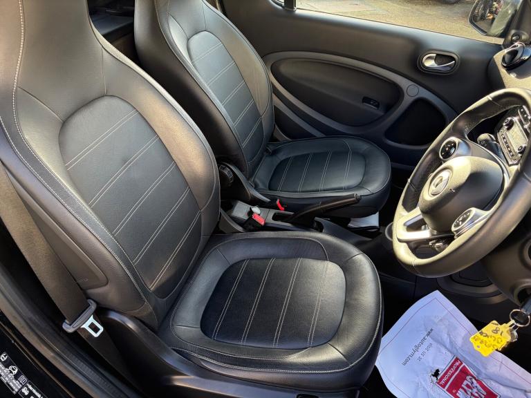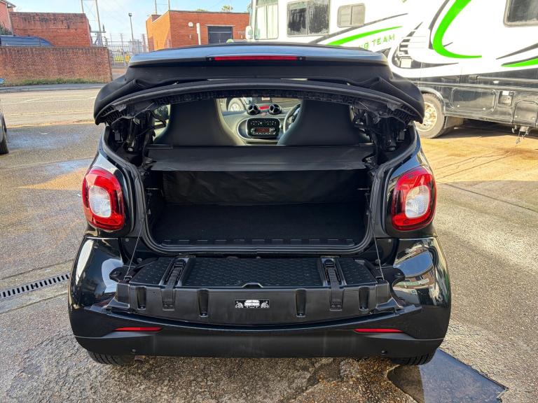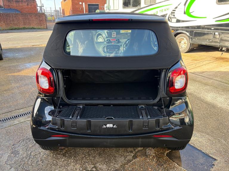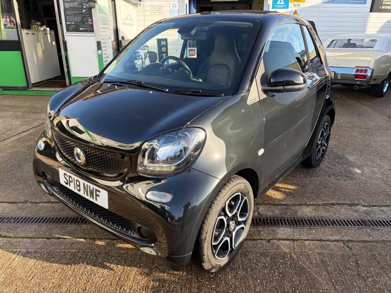 This sleek 2018 Smart ForTwo 1.0 Prime Cabriolet with only 34963 miles on the clock is the ultimate city convertible, perfect for zipping around town in style. With its petrol engine and ULEZ compliance, it's as efficient as it is stylish - perfect for urban living. MOT expires on 19/11/2026, so you can enjoy worry-free driving for years to come. This compact car is equipped with 2 seats and 2 doors, making parking a breeze in any tight spot. The Smart Audio-System and 15in Alloy Wheels add a touch of luxury, while the Black Front Grille gives it a sporty edge. Complete with a Breakdown Kit with Air Compressor and Sealant, this Smart ForTwo has everything you need for a smooth and enjoyable ride. Features Include: , 12 volt socket with cover, smart audio-system, 15in alloy wheels - 5-twin-spoke painted in black with a high-sheen finish, black front grille, breakdown kit with air compressor and sealant, door mirror caps in tridion colour, door mirror with aspherically curved mirror glass on driver side, electric tritop fabric soft top in black with inside roof lining in grey, electric windows, exterior mirrors - manually adjustable, radiator trim - black, rear spoiler, rear windscreen - heated with timer control, removable roof bars, tridion safety cell in black solid paint, abs - anti lock braking system, airbag - kneebag for driver, airbags - driver and passenger, airbags - sidebags for driver and front passenger - combined head and thorax, brake assist, central locking with radio remote control - visual locking-verification signal and folding key, crash sensor for activation of hazard warning lights, crosswind assist, drive lock - automatic door locking when the vehicle is in motion, esp - electronic stability programme, hill start assist, isofix child seat attachment point on passenger seat, pedestrian impact protection front and side, seat belt reminder for driver and passenger, seat belts - three-point with seat belt tensioners and belt force limiters, automatic climate control, central locking with convenience closing features and immobiliser, centre console with pull-out tray and double cup holder, dashboard instruments with cockpit clock and rev counter, dashboard and door centre panel - black fabric, gearshift lever - trimmed in leather, heated seats for driver and front passenger, inside door opener - matt chrome, instrument cluster with multi functional colour 3.5in display, interior lighting, load-lashing eyes in luggage compartment, lockable