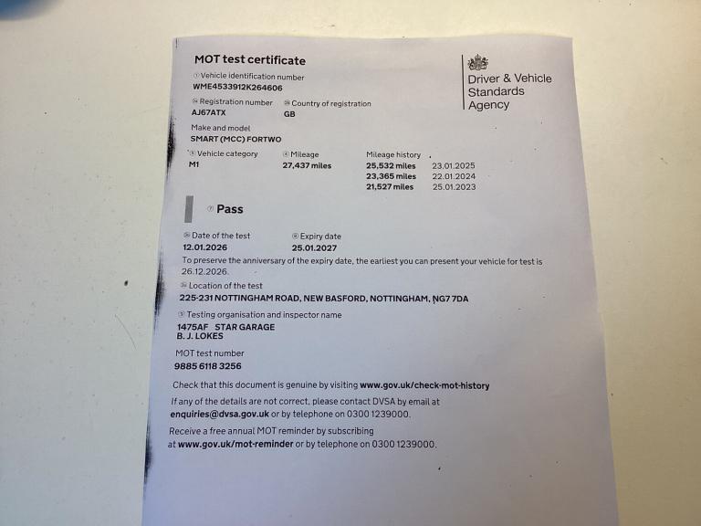 The car has been to Smarts r us for a service and diagnostic check. Four new tyres fitted for a new mot no advisories.