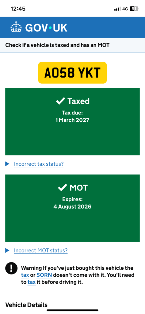 This vehicle has not been reported stolen, scrapped, exported or flagged as unroadworthy.