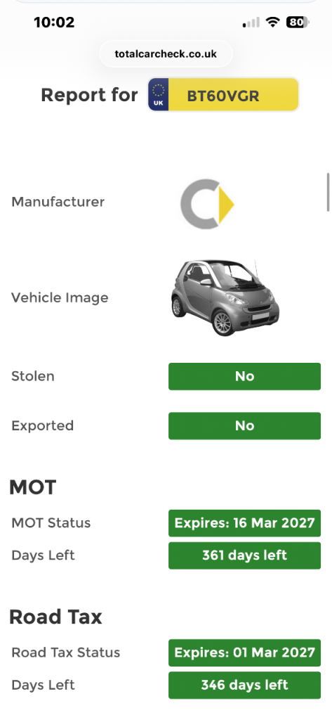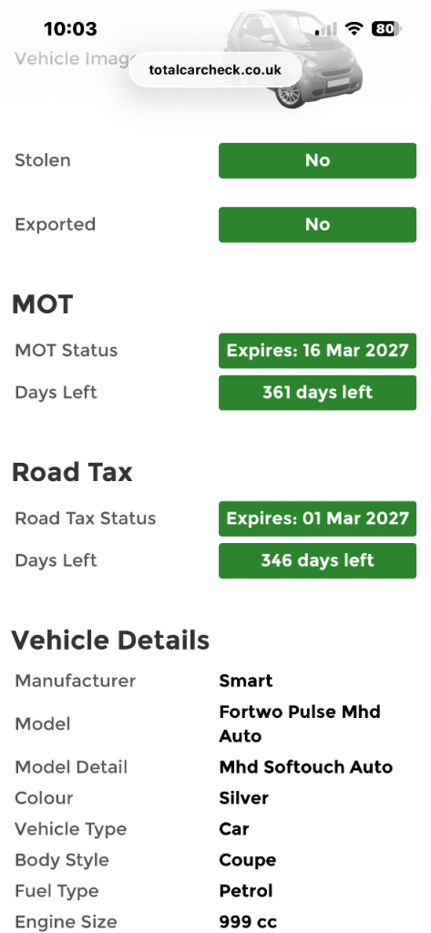 This vehicle has not been reported stolen, scrapped, exported or flagged as unroadworthy.