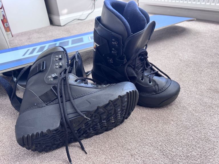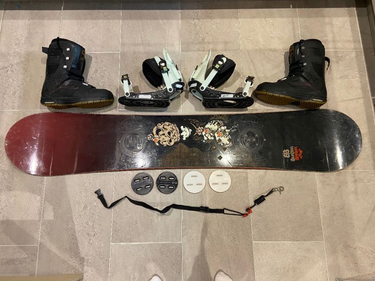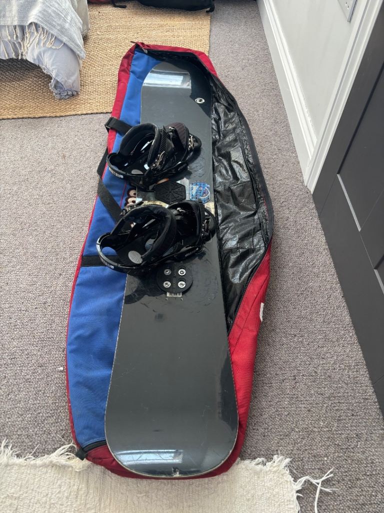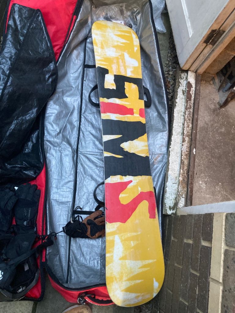 Vintage unused snowboard, boots (size 42) and bag. 153 board with bindings.