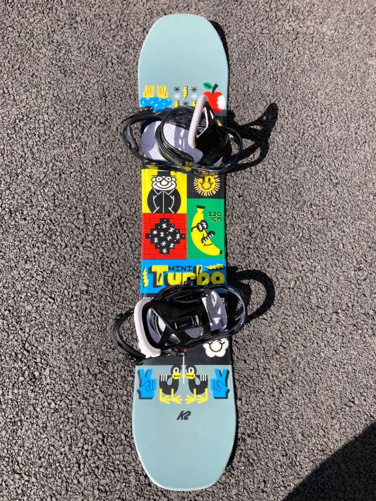 K2 Mini Turbo Snowboard 120cm (approx age 7-11 depending on height or weight). Plus Burton Smalls bindings for boot size 3-6. Delivery to UK mainland postcode included or collect from south Birmingham address for £55