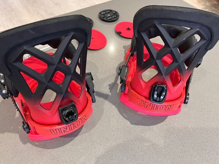 Union Contact Pro bindings used for one ski holiday last year, bought new before that holiday. I am a size 9 boot, and they worked perfectly for me, I would say they are at their maximum settings size wise though, so a size 10 boot would probably be too big, and you’d need the next size binding up. They are in excellent condition, no issues whatsoever so ever. Great binding, the only reason I’m selling them is Santa has brought me some Nidecker Supermatics.
