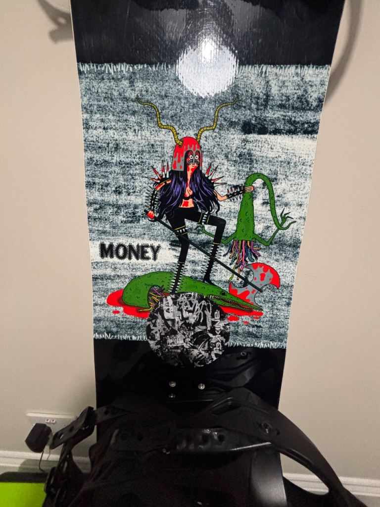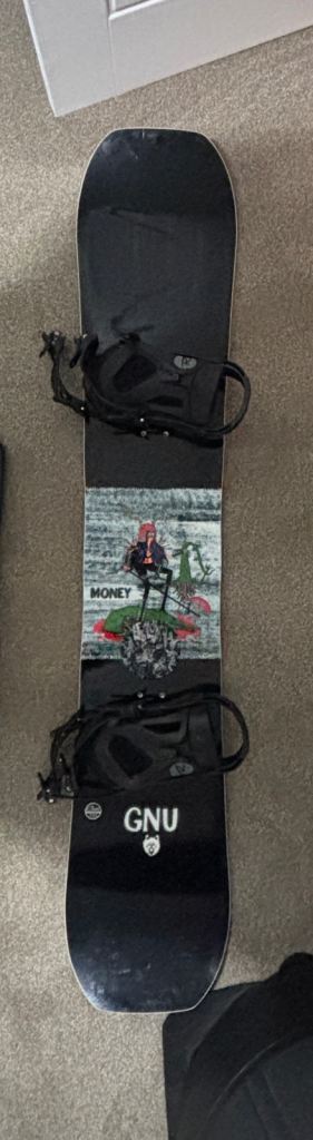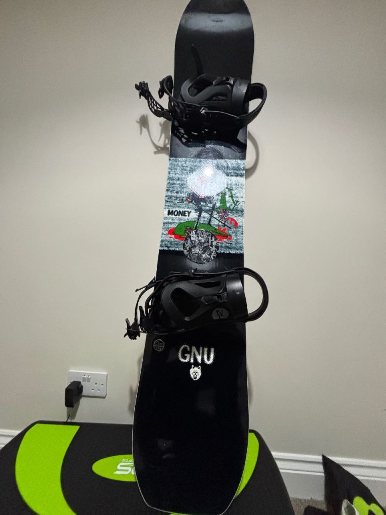 GNU Money snowboard bought 2 years ago used for 6 days on trip to Italy. Paid £280 for board selling for £140 without bindings.