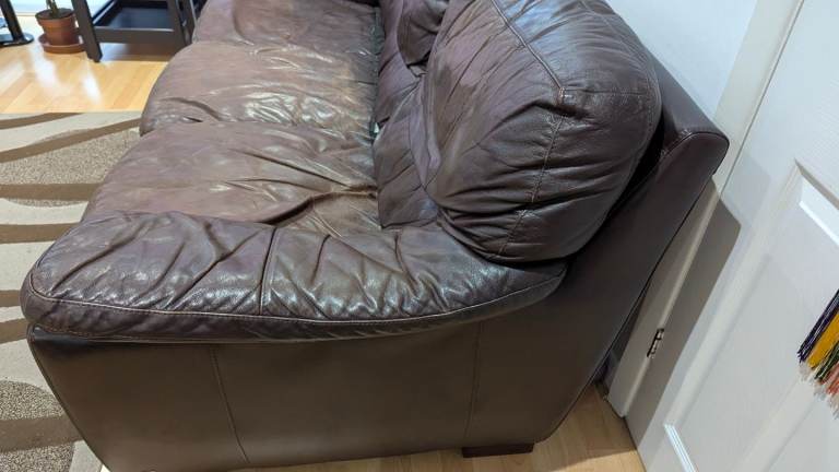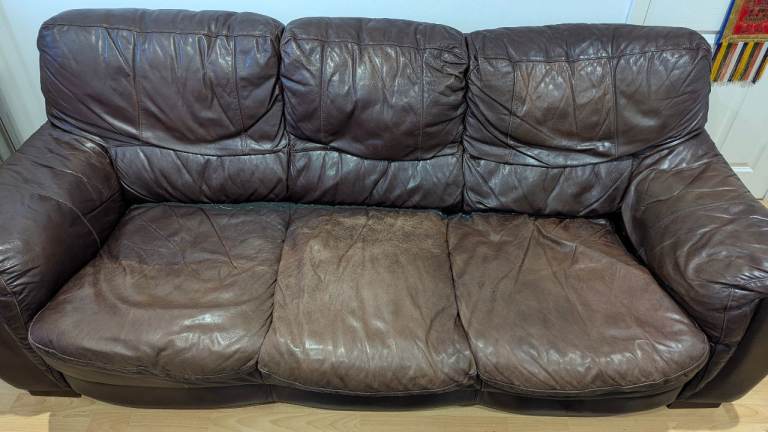2 and 3 Seater leather sofa. Used. The 2 seater is in relatively good condition. The 3 seater had some tears, but if you are are able to you could fix. All the leather is in good condition.