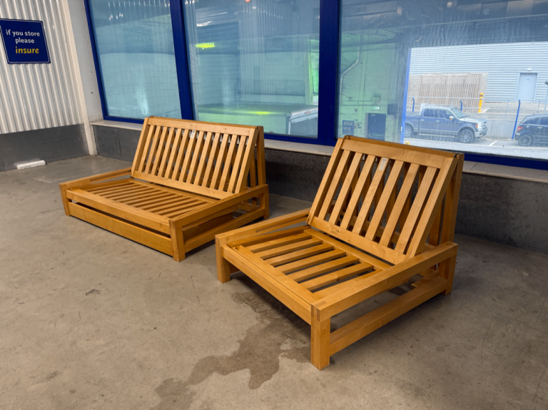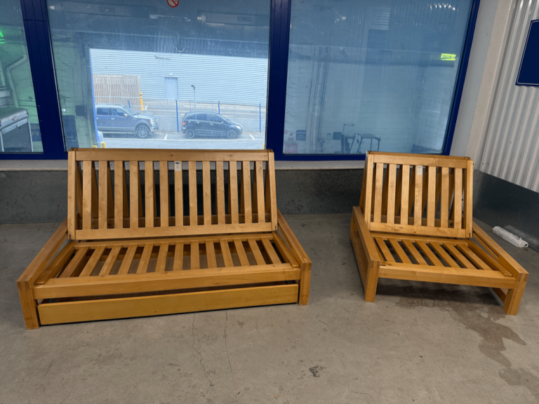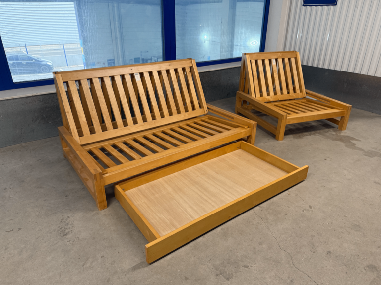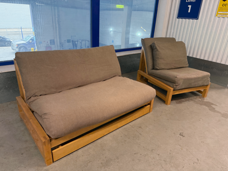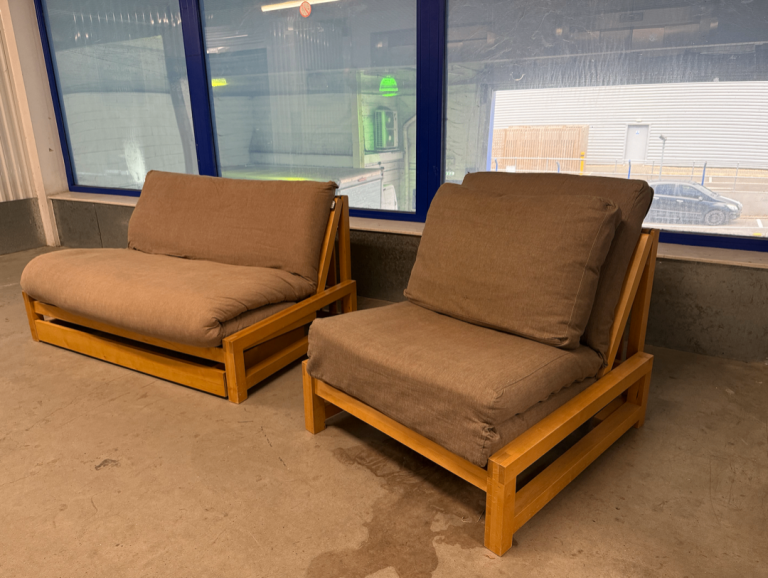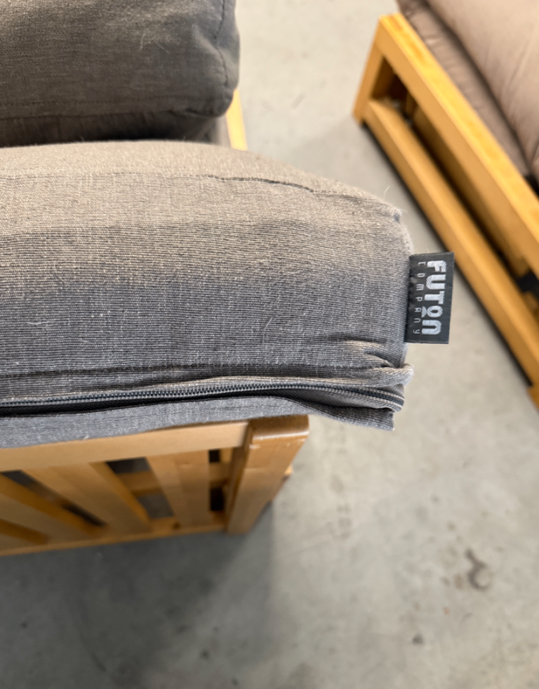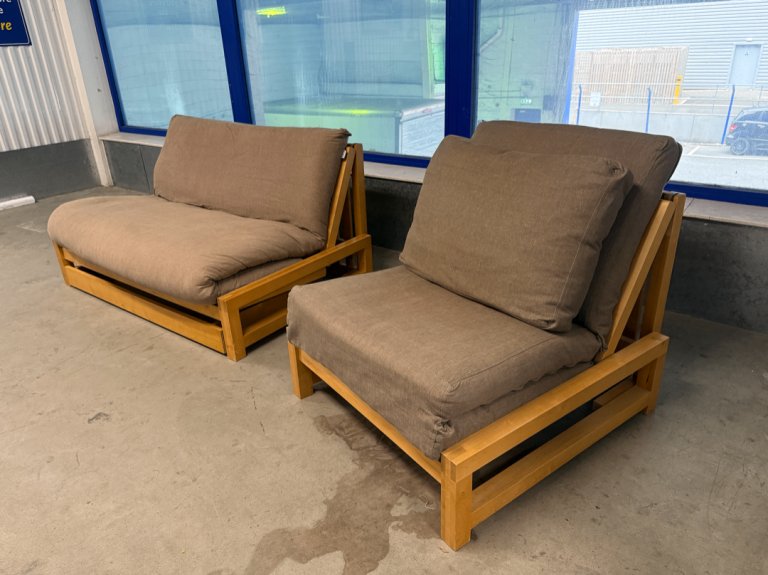 Comes with 2 seater under drawer and single cushion with covers in field mouse brown