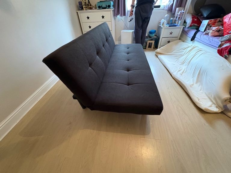Very good condition black fabric click clack sofa bed always been covered up with a blanket