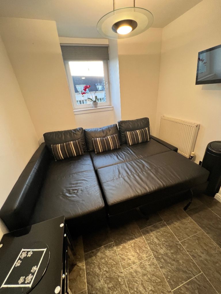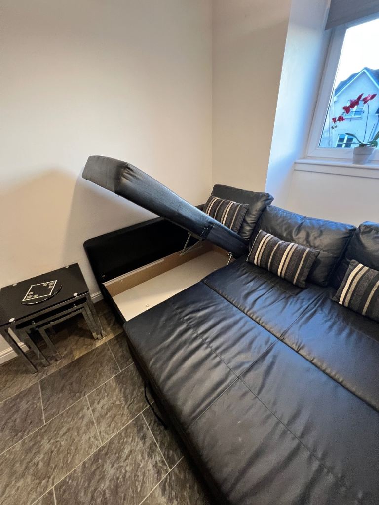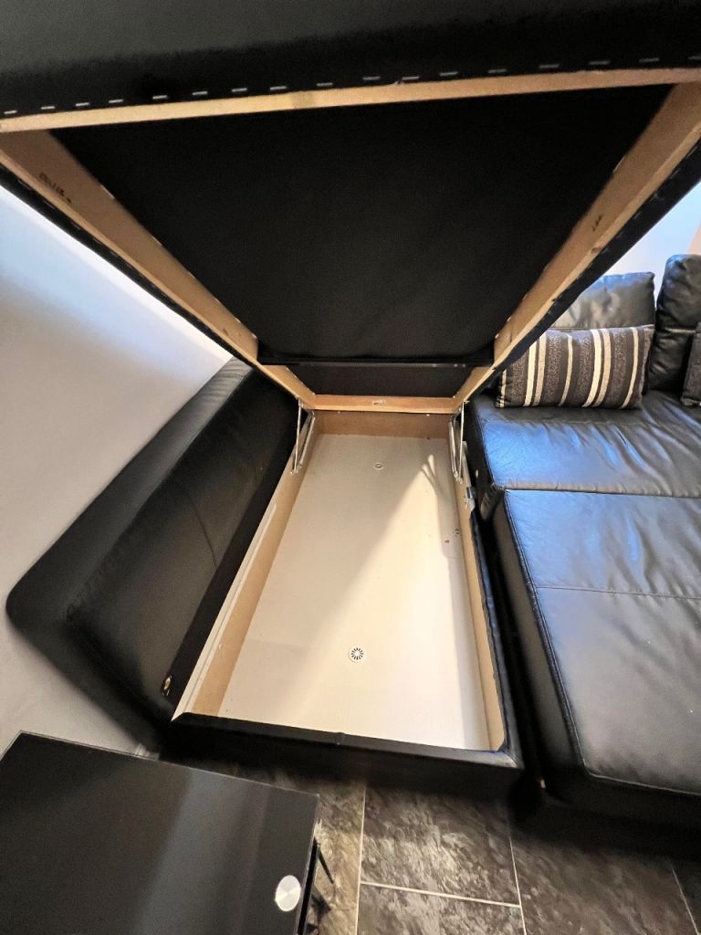 Posting for under a monthBlack L-Shaped Sofa Bed with Storage – Double Bed Size